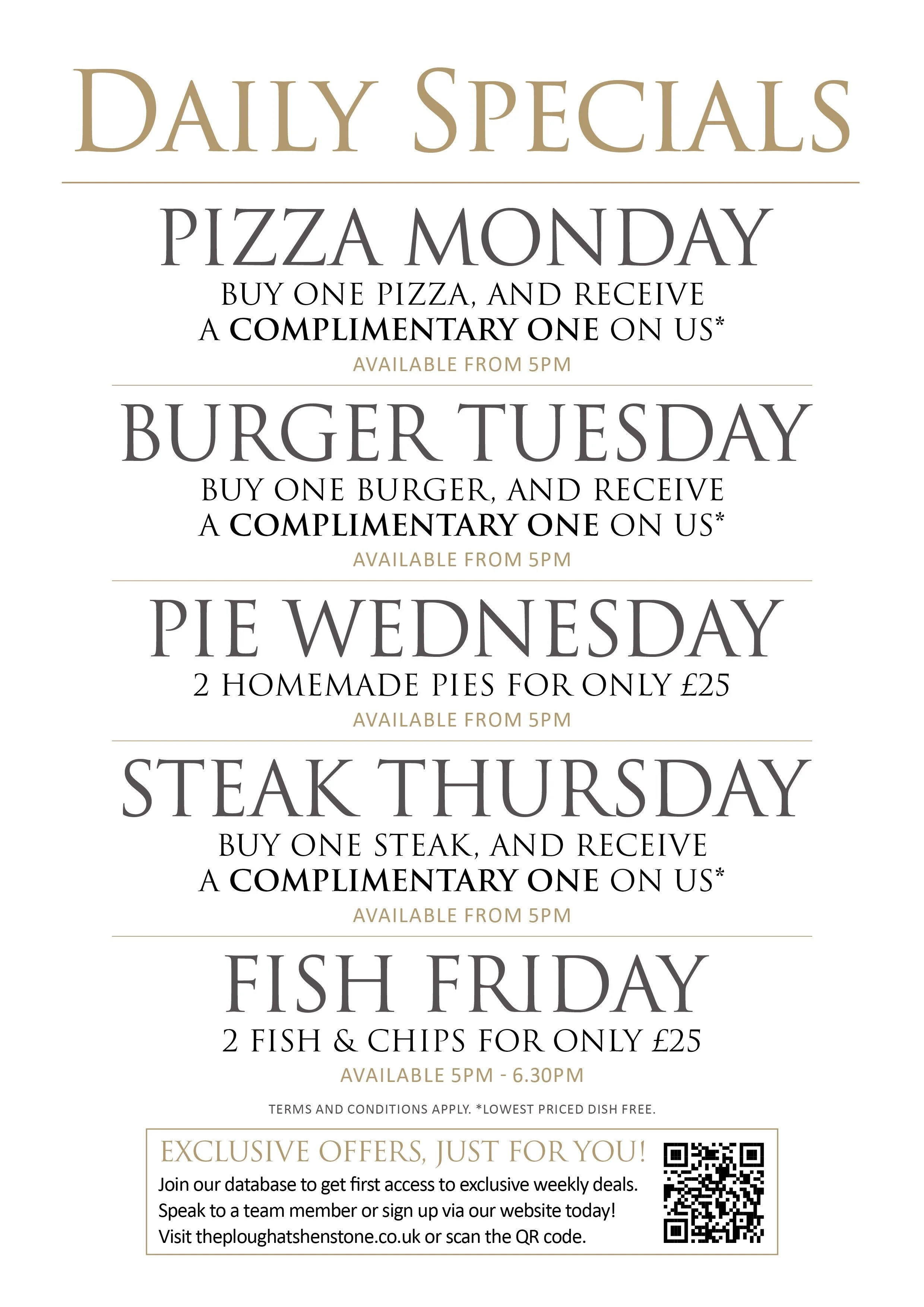 Come and enjoy our delicious menu, alongside these brilliant offers.